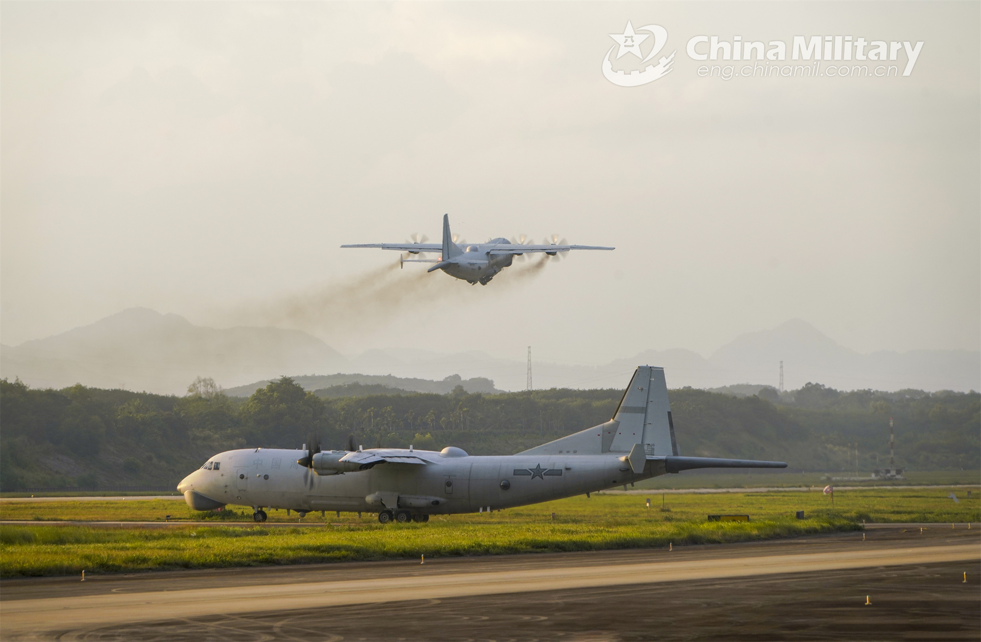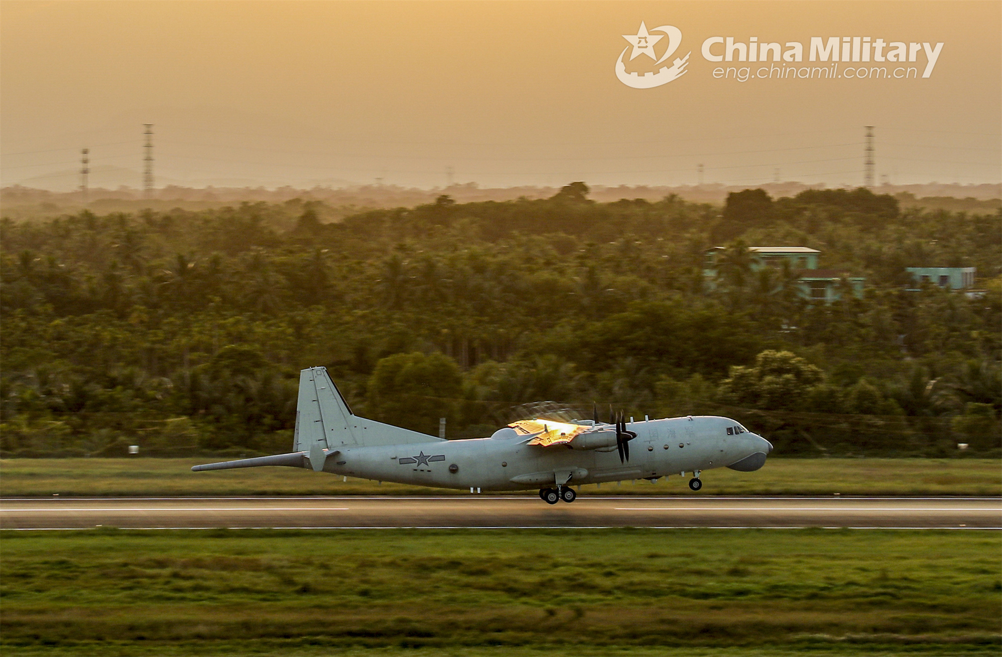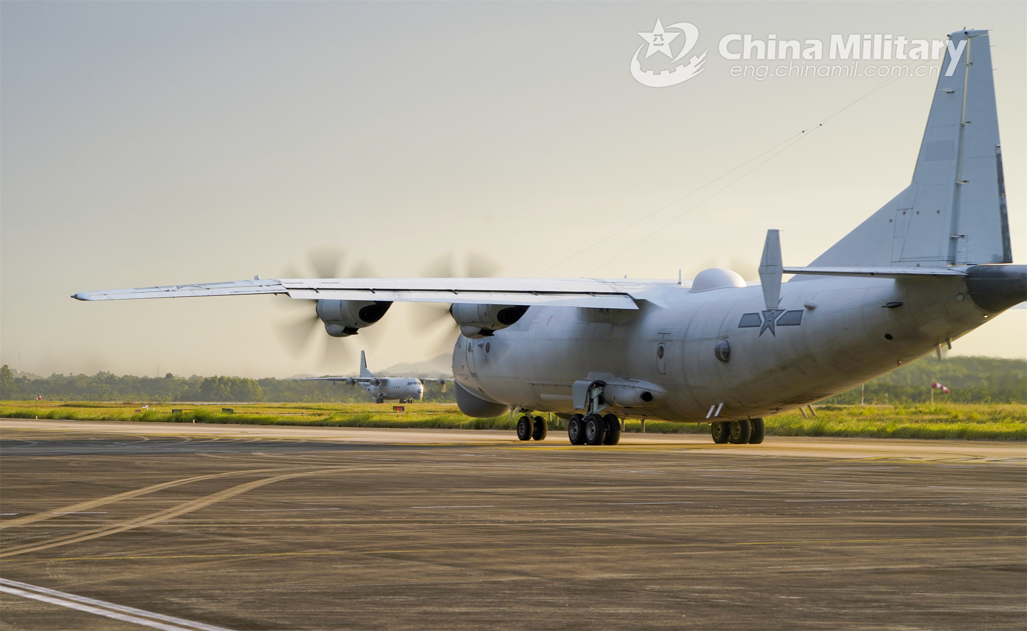An anti-submarine patrol aircraft attached to a naval aviation unit under the PLA Southern Theater Command speeds up to take off during the combat training on November 27, 2023. (eng.chinamil.com.cn/Photo by Qin Qianjiang)