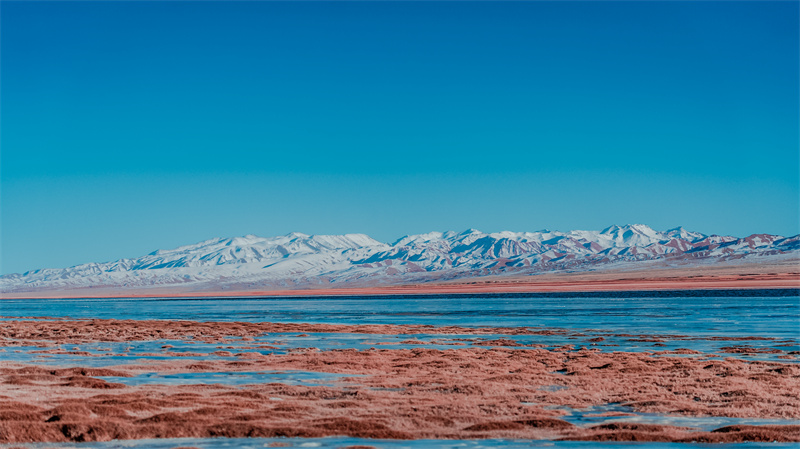 Alake Lake, nestled in the Qinghai-Tibet Plateau in northwest China’s Qinghai Province, has turned into a stunning winter wonderland, with emerald blue waters glistening against distant mountains blanketed in pristine snow.