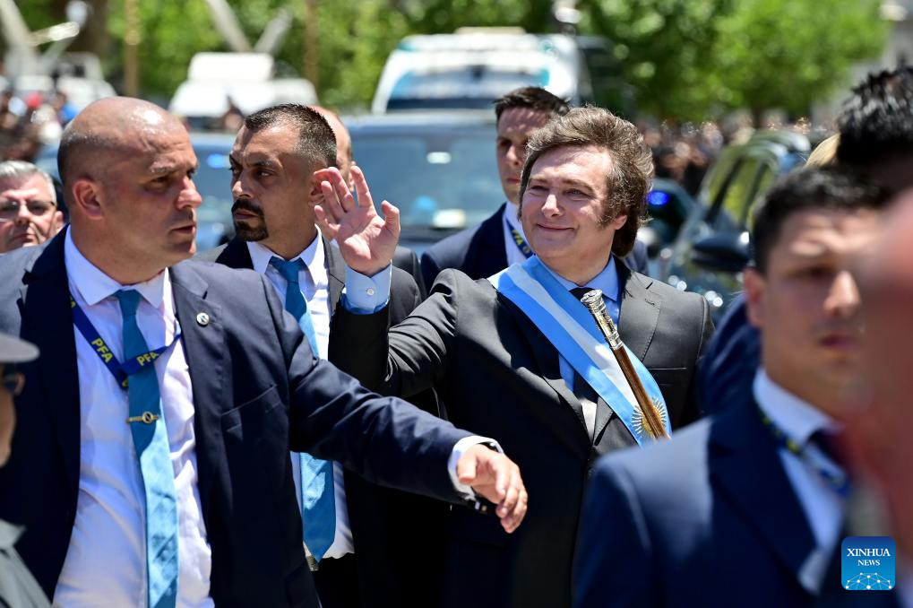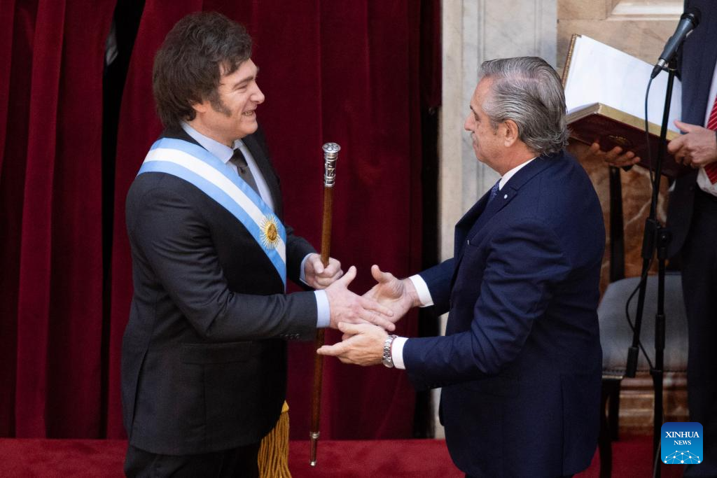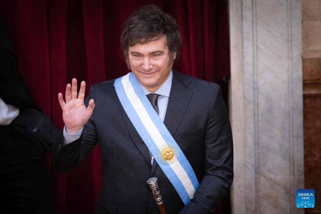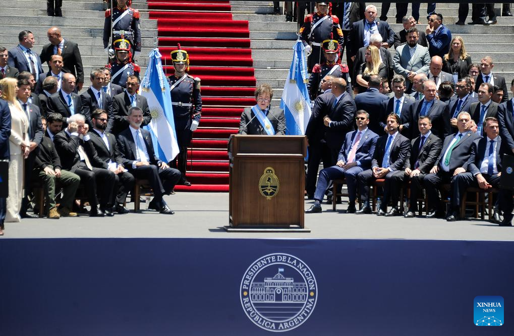 BUENOS AIRES, Dec. 10 (Xinhua) -- Javier Milei, a liberal politician and economist, assumed the Argentine presidency Sunday in a ceremony held at the National Congress in Buenos Aires, the country's capital.