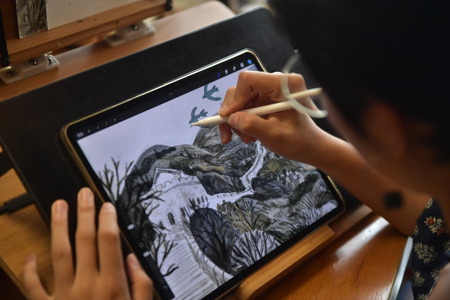 DANDONG, Dec. 11 (Xinhua) -- Jiang Yige is a native illustrator of Dandong, a city noted for Hushan section of the Great Wall, widely regarded as the eastern end of the Great Wall built during the Ming Dynasty (1368-1644). The magnificent view of the Great Wall has profoundly inspired Jiang's drawings. Through her captivating works shared on social media platforms, she has successfully caught a growing number of eyes, and aroused deeper interest in the history and culture related to the Great Wall among her audiences.