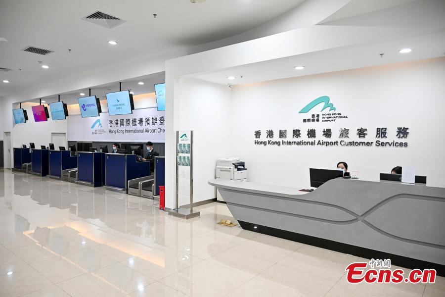 Check-in counters of the Hong Kong International Airport open at the Zhuhai Port of the Hong Kong-Zhuhai-Macao Bridge in south China's Guangdong Province, Dec. 11, 2023. (Photo: China News Service/Chen Jimin)
