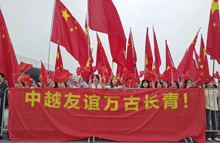 Amidst the cheers of over 400 representatives from China and Vietnam, Xi Jinping, general secretary of the Communist Party of China (CPC) Central Committee and Chinese president, accompanied by his wife Peng Liyuan, stepped out of the aircraft cabin, greeting the welcoming crowd with smiles and waves.