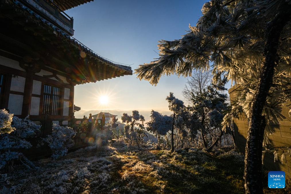 Snow-covered Dahong Mountain Scenic Spot in Suizhou, central China's Hubei