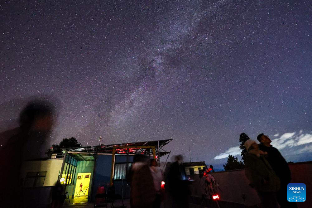 Astronomy enthusiasts wait to watch Geminids meteor shower in Yulong County, Lijiang City, southwest China's Yunnan Province, Dec. 14, 2023. (Xinhua/Cui Wen)