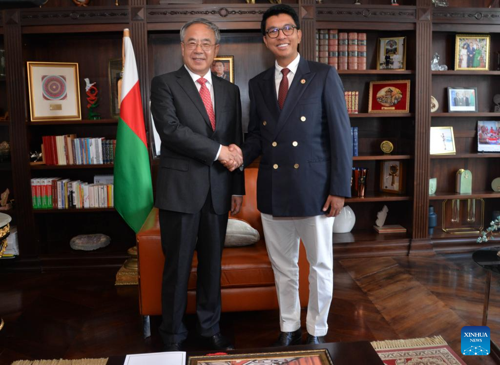 ANTANANARIVO, Dec. 17 (Xinhua) -- At the invitation of President of the Republic of Madagascar Andry Nirina Rajoelina, Hu Chunhua, special envoy of Chinese President Xi Jinping and vice chairman of the National Committee of the Chinese People's Political Consultative Conference, attended Rajoelina's inauguration here Saturday and met with Rajoelina Sunday.