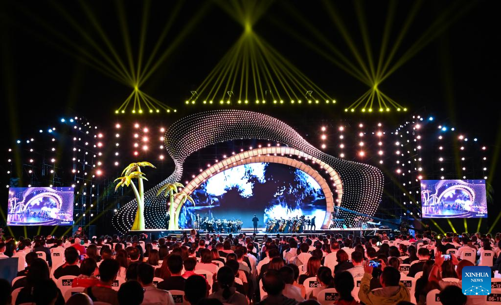 This photo taken on Dec. 16, 2023 shows the opening ceremony of the 5th Hainan Island International Film Festival in Sanya, south China's Hainan Province. The festival runs from Dec. 16 to 22. (Xinhua/Fan Yuqing)