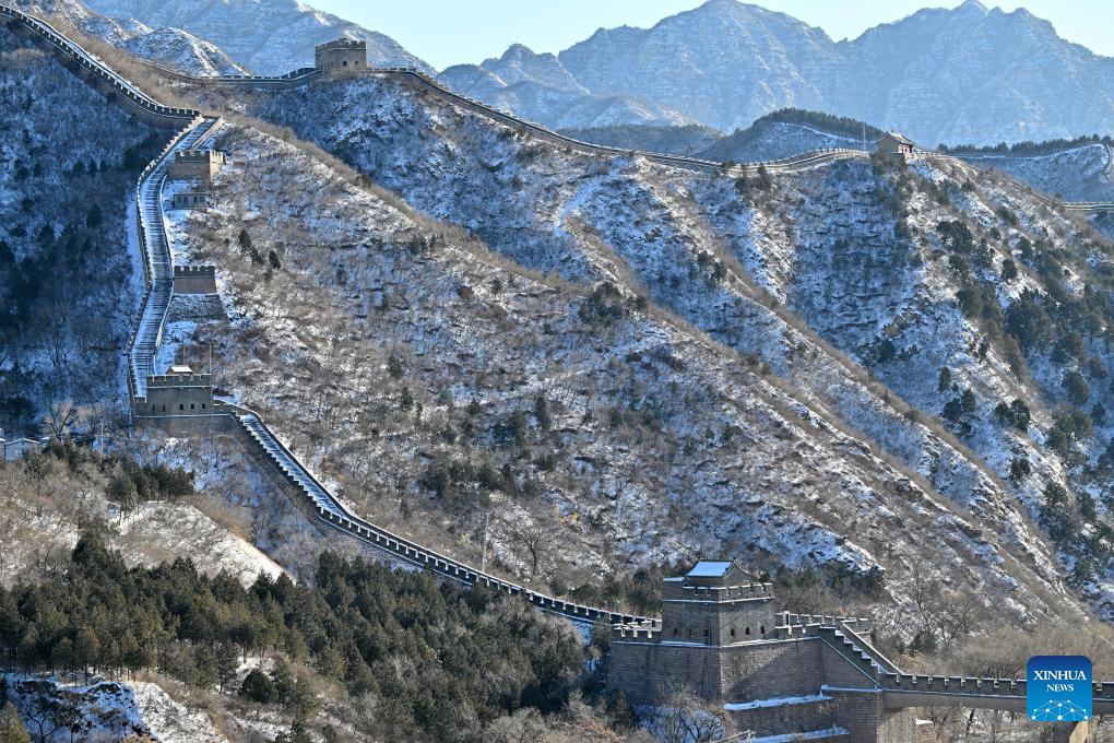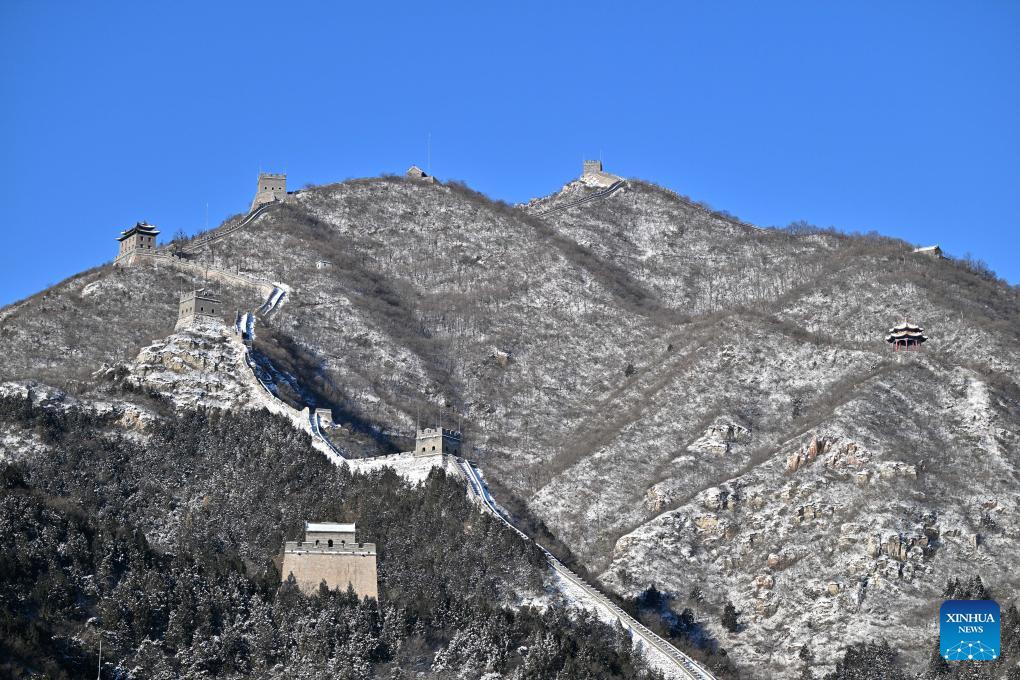 This photo taken on Dec. 16, 2023 shows the snow scenery at the Juyongguan section of the Great Wall in Beijing, capital of China. (Xinhua/Chen Yehua)