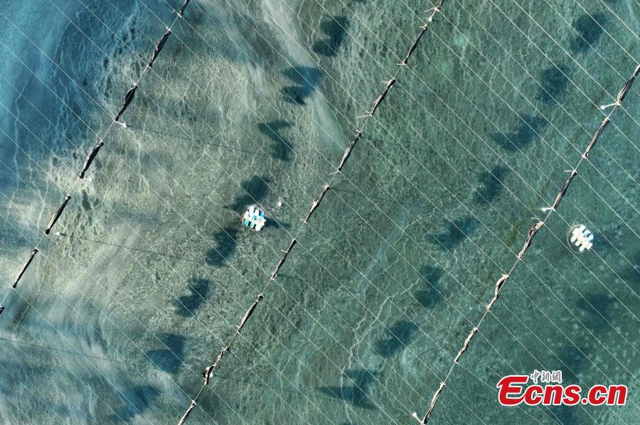 Aerial view of the frozen marine farm in Qingdao, east China's Shandong Province, Dec. 17, 2023. (Photo: China News Service/Wang Haibin)