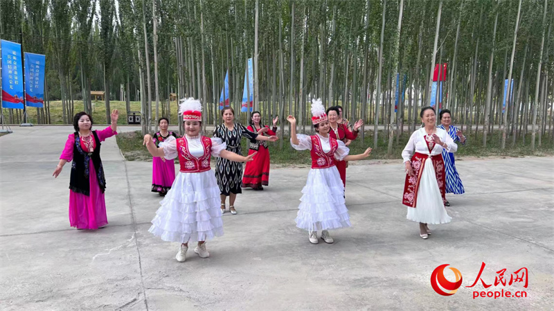 People dressed in traditional costumes dance. (People's Daily Online/Li Haoyang)