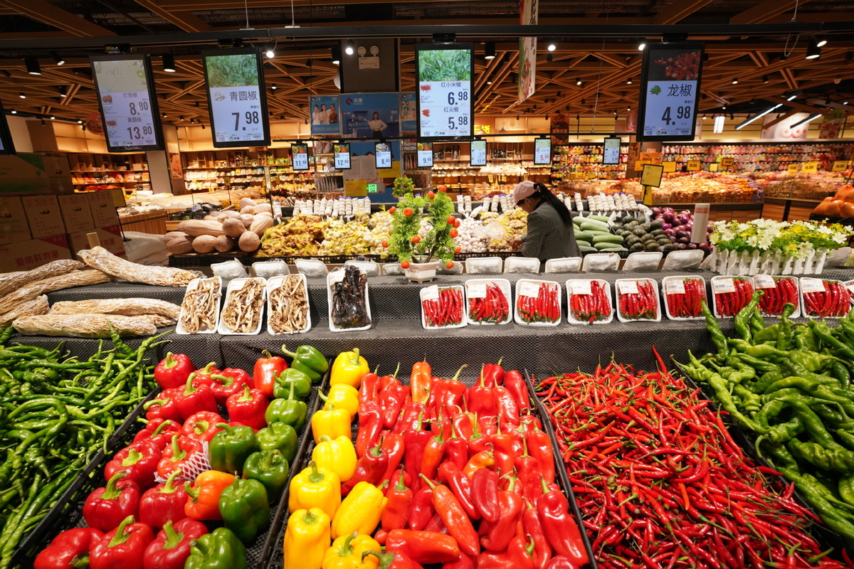 A woman selects vegetables at a supermarket in Huaihua city of Hunan province, Oct 13, 2023. [Photo/Xinhua]