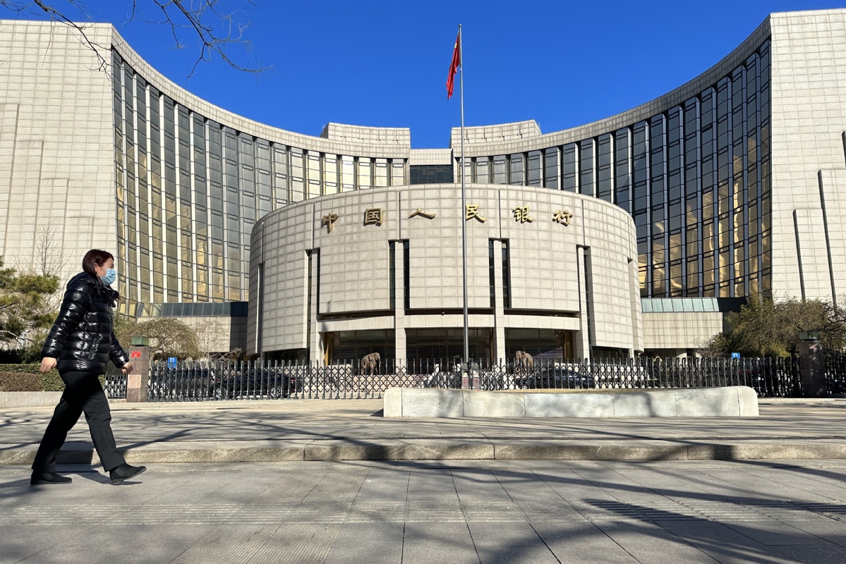 A pedestrian walks past the headquarters of PBOC in Beijing. [JIANG QIMING/CHINA NEWS SERVICE]