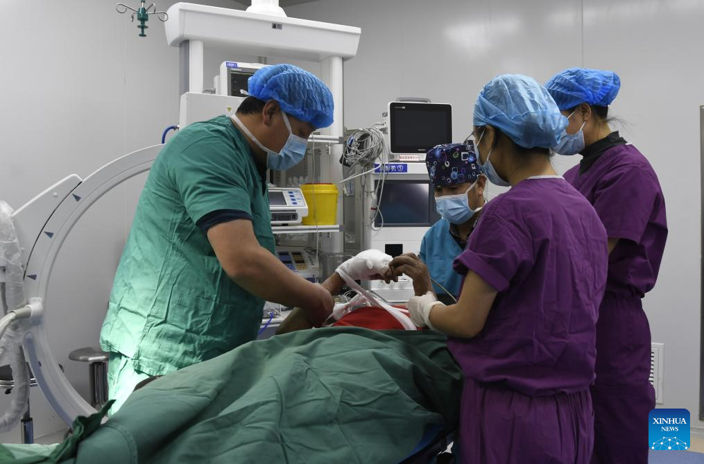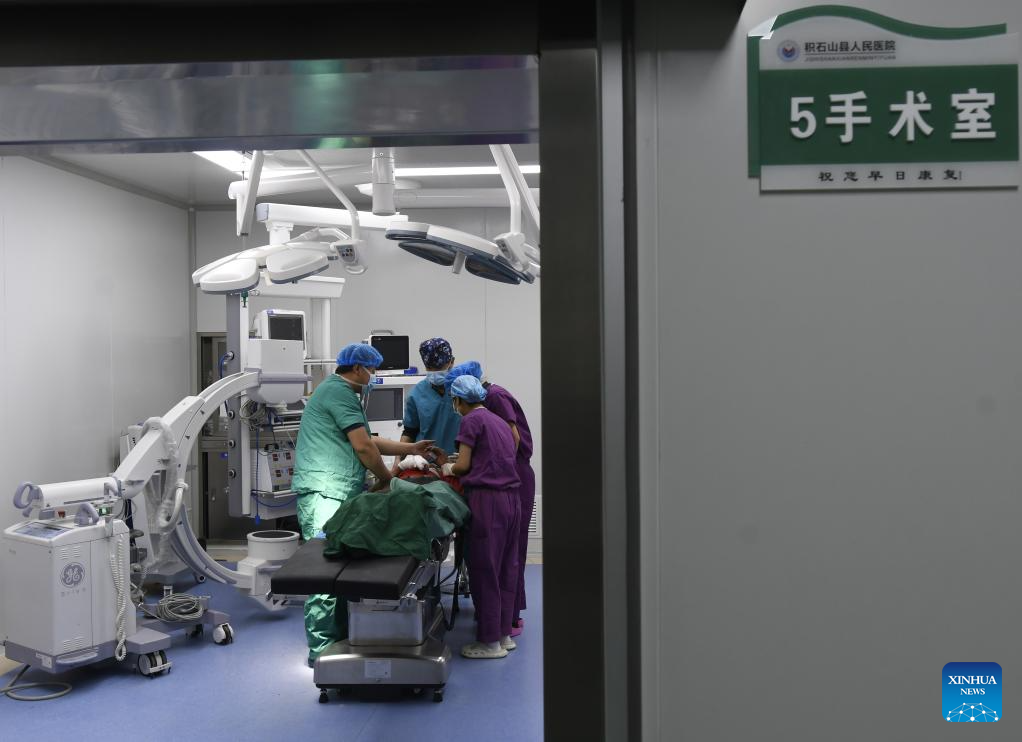 A person injured during an earthquake receives treatment at the People's Hospital of Jishishan County, northwest China's Gansu Province, Dec. 19, 2023. A 6.2-magnitude earthquake jolted the county in Gansu at midnight on Monday. Some of the injured were sent to the People's Hospital of Jishishan County. (Photo by Shi Youdong/Xinhua)