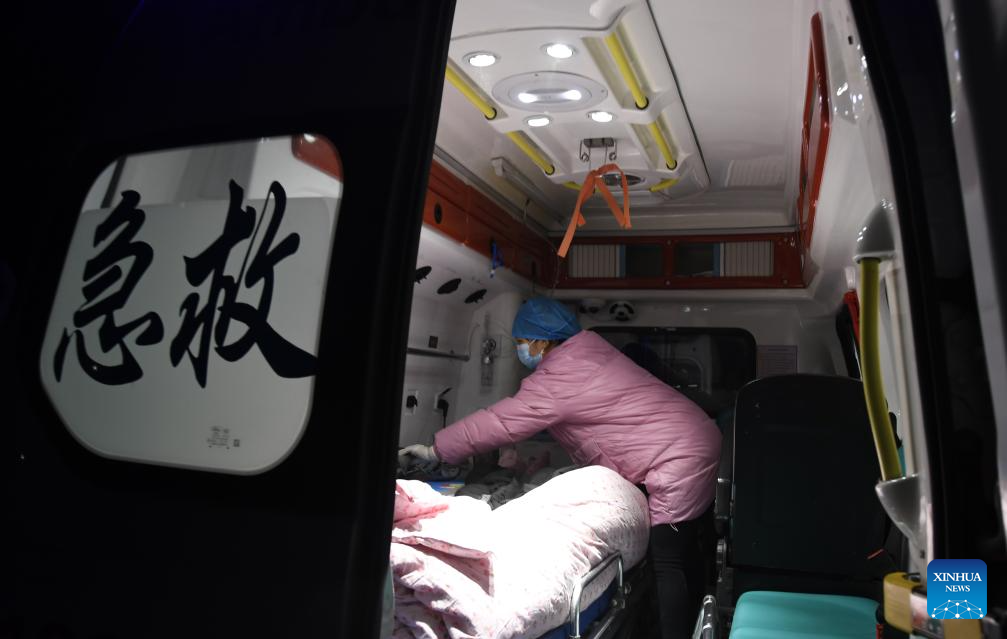 A medical worker transfers an injured person in Liuji Town of Bonan-Dongxiang-Salar Autonomous County of Jishishan in Linxia Hui Autonomous Prefecture, northwest China's Gansu Province, Dec. 19, 2023. A 6.2-magnitude earthquake jolted the county in Gansu at midnight on Monday. Some of the injured were sent to the People's Hospital of Jishishan County. (Photo by Shi Youdong/Xinhua)