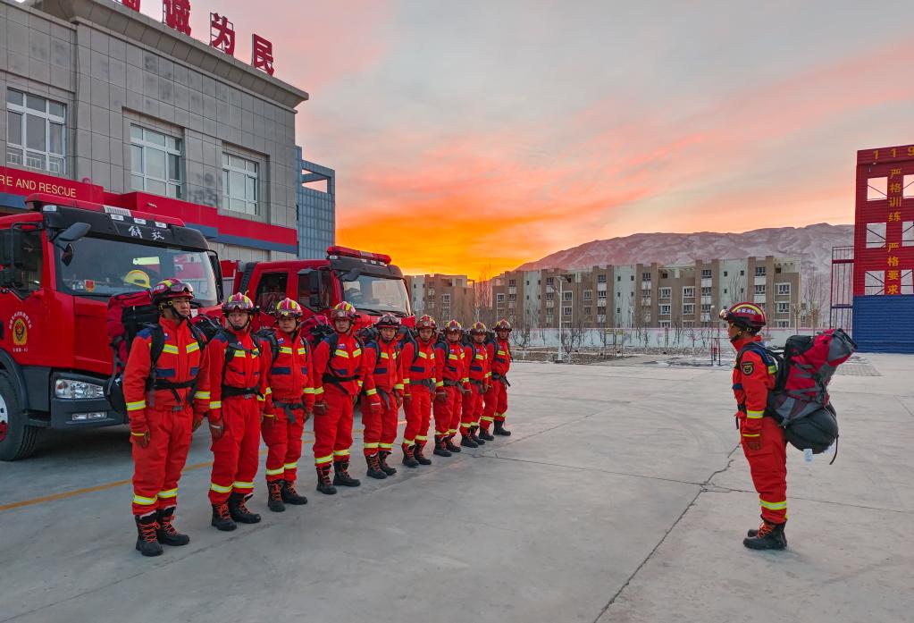 Rescuers rally in response to an earthquake at a firefighting station in Akqi County, Kizilsu Kirgiz Autonomous Prefecture in northwest China's Xinjiang Uygur Autonomous Region, Dec. 19, 2023. No casualties have been reported so far after a 5.5-magnitude earthquake jolted the city of Atux in Kizilsu Kirgiz Autonomous Prefecture in northwest China's Xinjiang Uygur Autonomous Region. (Photo by Xiang Zheng/Xinhua)