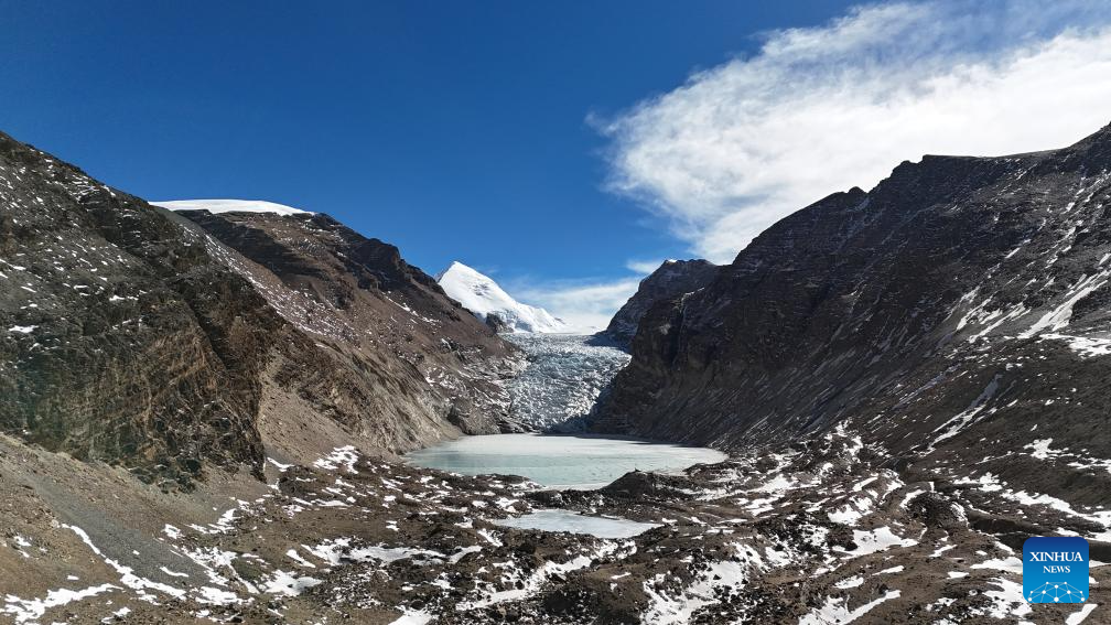 This photo taken on Dec. 19, 2023 shows a view of the Qoidenyima Glacier after snow in Gangba County of Xigaze City, southwest China's Xizang Autonomous Region. (Xinhua/Wang Zehao)