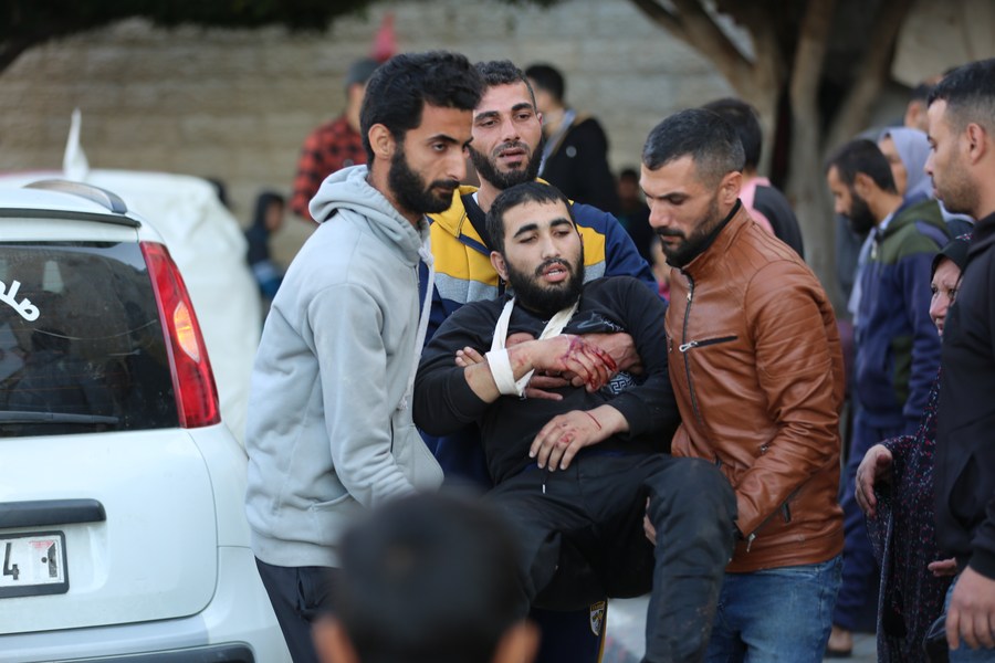 An injured man is transferred to a hospital in central Gaza Strip city of Deir el-Balah, on Dec. 19, 2023. (Xinhua)