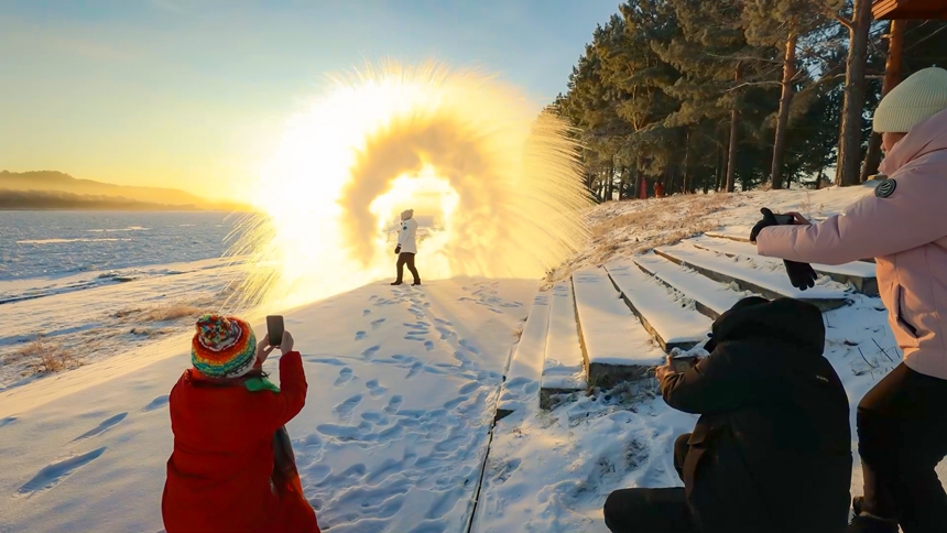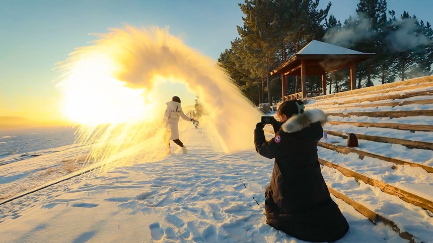 With temperatures in Mohe city, northeast China's Heilongjiang Province, plummeting to below minus 40 degrees Celsius in recent days, the city has become a magnet for snow lovers eager to experience the charm of ice and snow. Tourists are flocking to the Beiji village, also known as Arctic village, to take part in the unique phenomenon known as "splashing water into ice."
