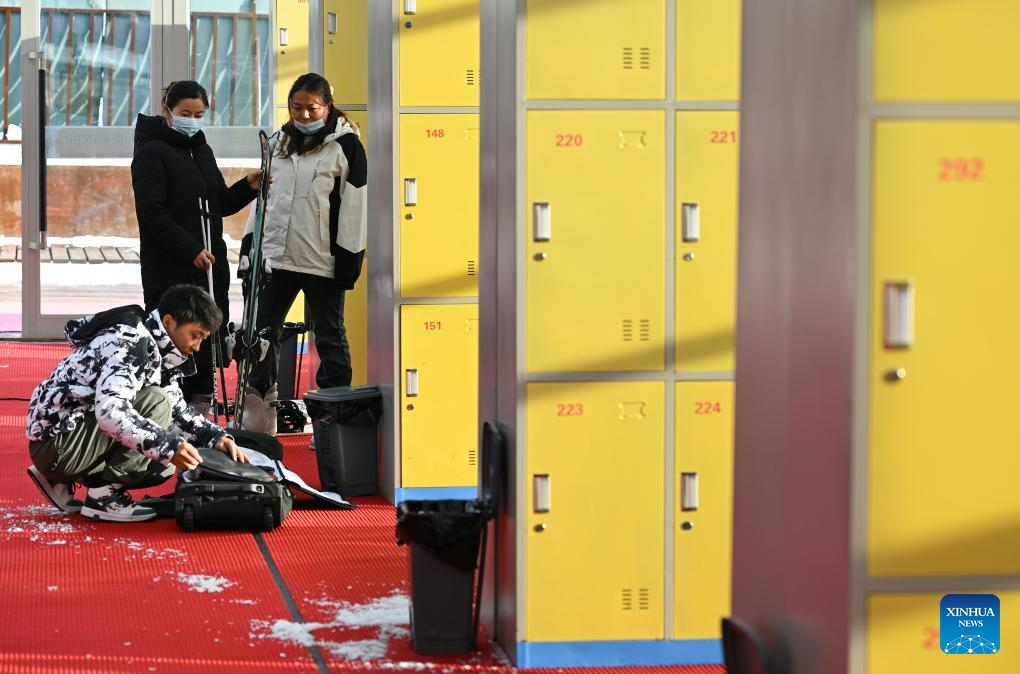 Tourists prepare winter sports equipment at Narat international ski resort in Xinyuan County, Ili Kazak Autonomous Prefecture, northwest China's Xinjiang Uygur Autonomous Region, Dec. 21, 2023. (Xinhua/Li He)