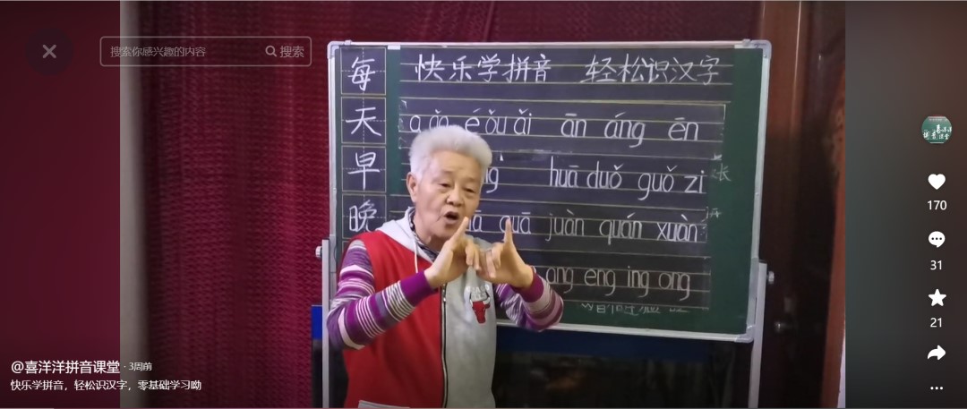 Since 2021, she started teaching Chinese pinyin, or the phonetic alphabet, on online platforms. Many people are learning pinyin, the Three Character Classic and ancient poems from her.