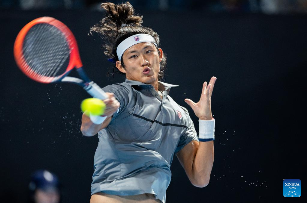 This file photo taken on Jan. 17, 2023 shows Zhang Zhizhen of China competing during the men's single 1st round match at Australian Open tennis tournament, in Melbourne, Australia. (Photo by Hu Jingchen/Xinhua)
