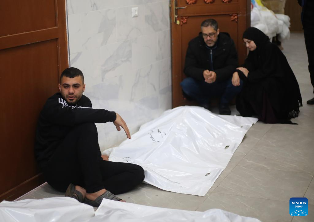People mourn victims at a hospital in the southern Gaza Strip city of Rafah, on Dec. 26, 2023. At least 20,915 Palestinians have been killed, and 54,918 others wounded in the Israel-Hamas conflict since Oct. 7, the Gaza-based Health Ministry said Tuesday. (Photo by Khaled Omar/Xinhua)