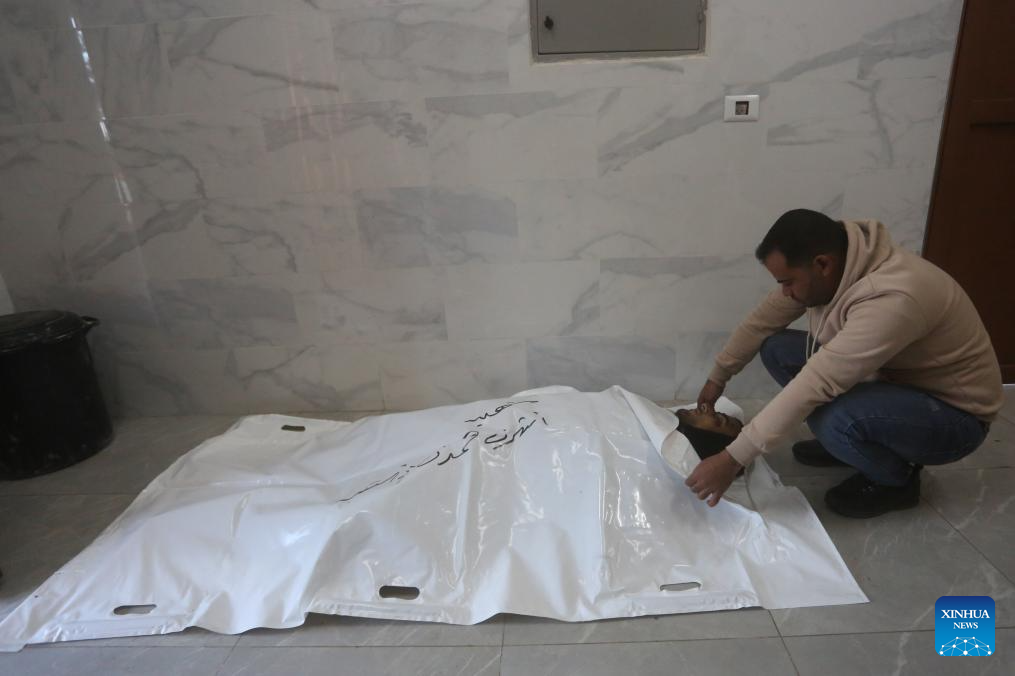 People mourn a victim at a hospital in the southern Gaza Strip city of Rafah, on Dec. 26, 2023. At least 20,915 Palestinians have been killed, and 54,918 others wounded in the Israel-Hamas conflict since Oct. 7, the Gaza-based Health Ministry said Tuesday. (Photo by Khaled Omar/Xinhua)