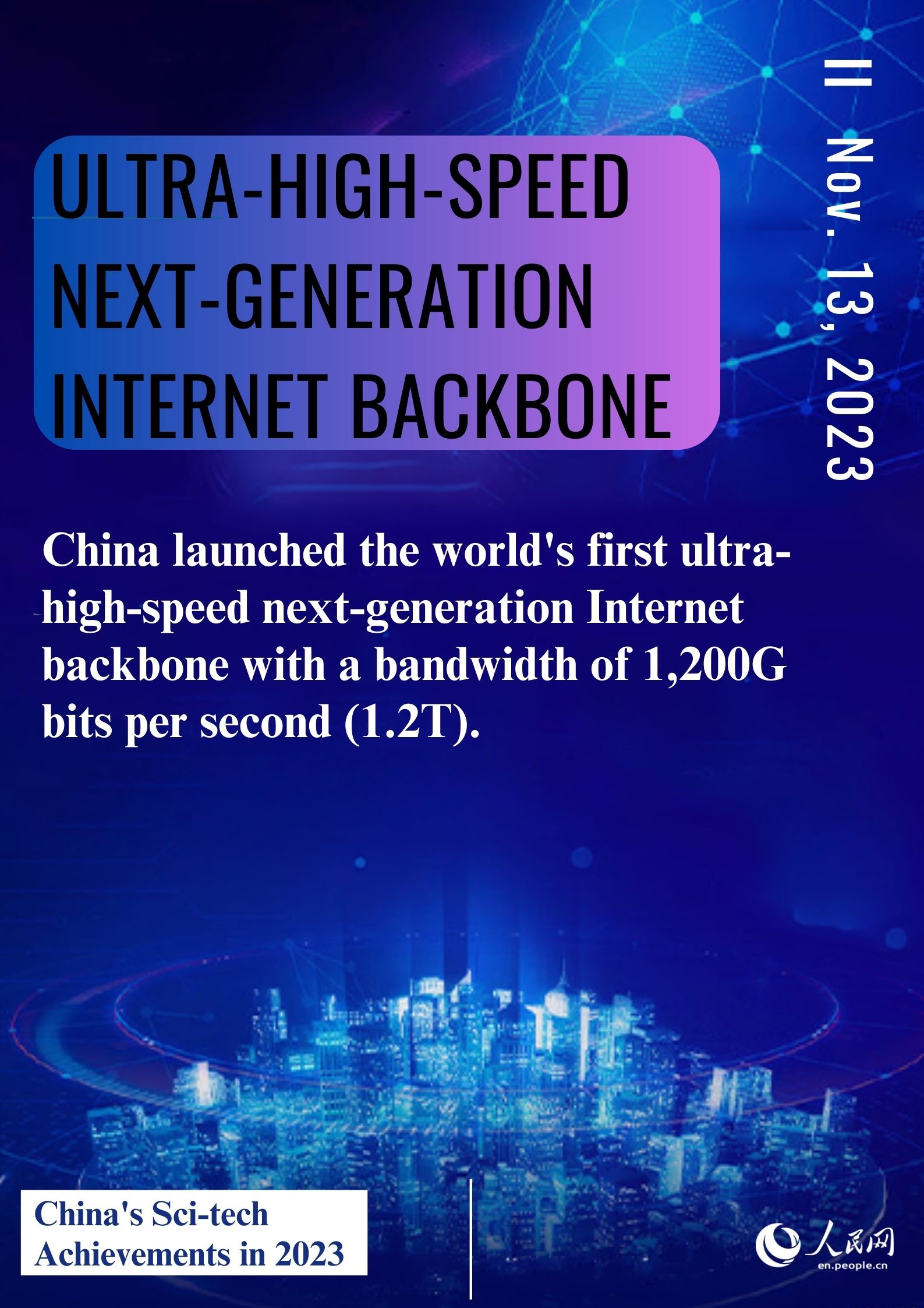 China has launched the world's first ultra-high-speed next-generation Internet backbone with a bandwidth of 1,200G bits per second (1.2T), marking a milestone in global internet infrastructure, according to a press conference held at the Tsinghua University in Beijing on Nov. 13, 2023.