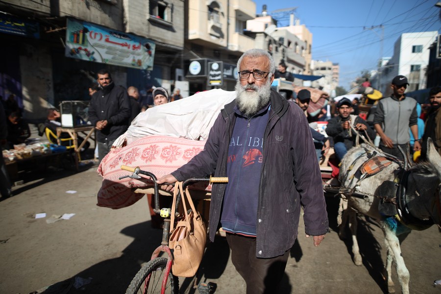 People flee from their homes at Nuseirat Refugee Camp, central Gaza Strip, on Dec. 26, 2023. (Xinhua)