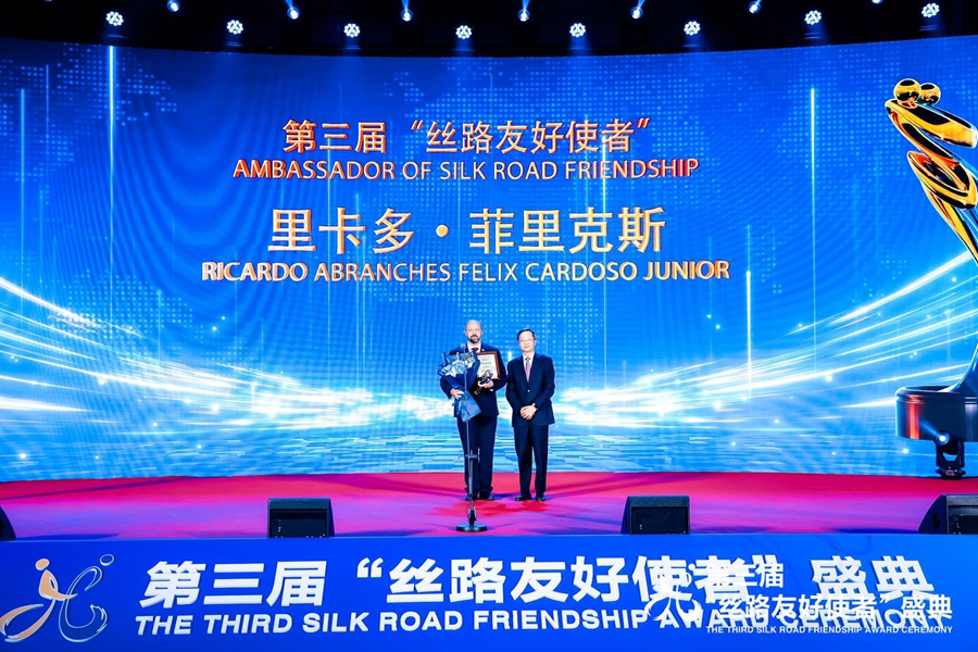 Ricardo Abranches Felix Cardoso Junior (left) receives his award at the ceremony. ?(Photo provided to People’s Daily Online)
