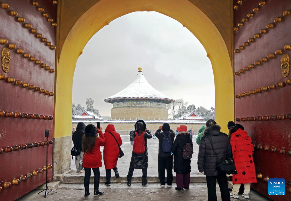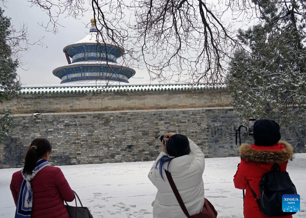 Visitors take photos at the Temple of Heaven in Beijing, capital of China, Dec. 11, 2023. (Xinhua/Mu Wenchun)
