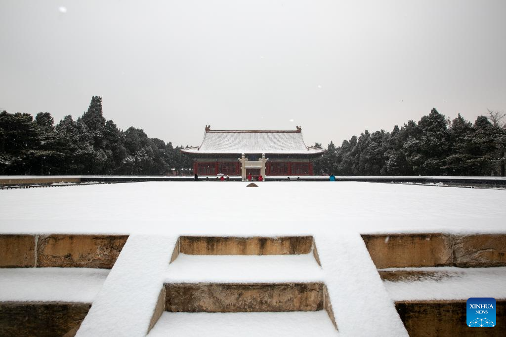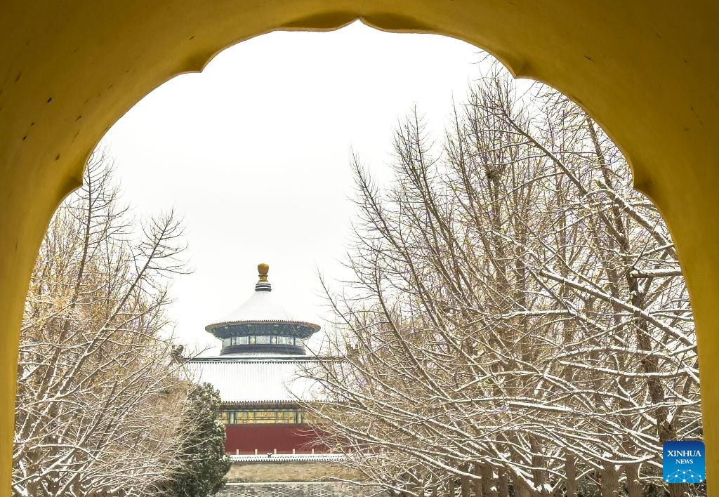 This cellphone photo taken on Dec. 11, 2023 shows the snow scenery of the Hall of Prayer for Good Harvest of the Temple of Heaven in Beijing, capital of China. (Xinhua/Mu Wenchun)