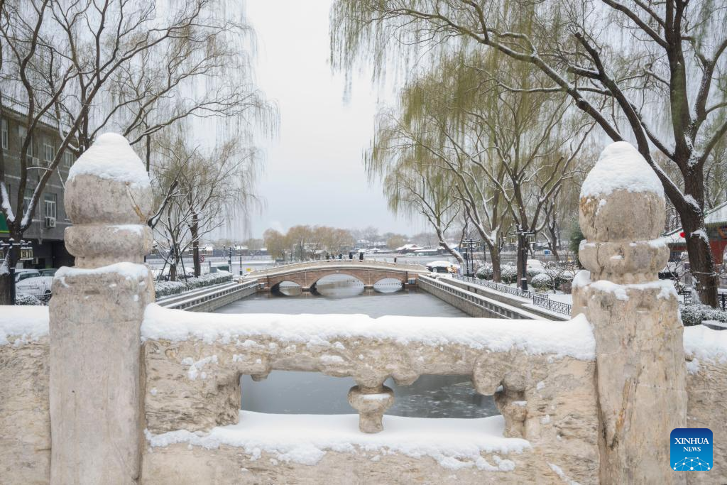 This photo taken on Dec. 11, 2023 shows the snow scenery of the Wanning Bridge in Beijing, capital of China. (Xinhua/Cai Yang)