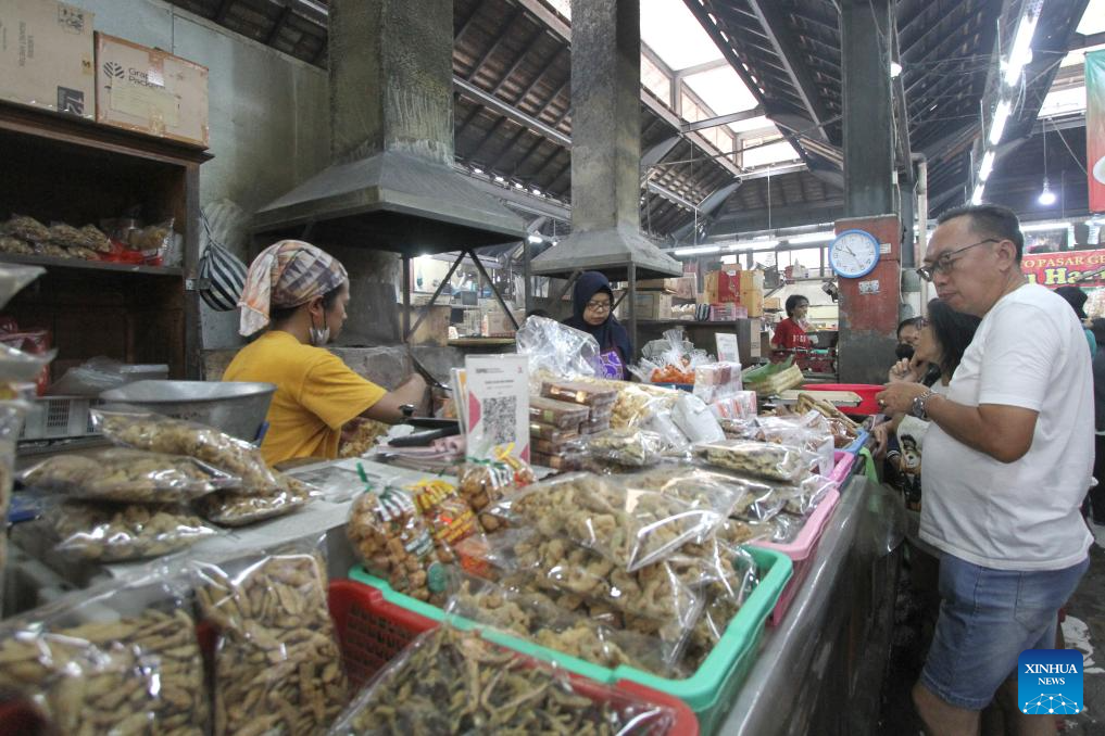 People shop during New Year holiday at Pasar Gede traditional market in Surakarta, Central Java, Indonesia, on Dec. 31, 2023. (Photo by Bram Selo/Xinhua)