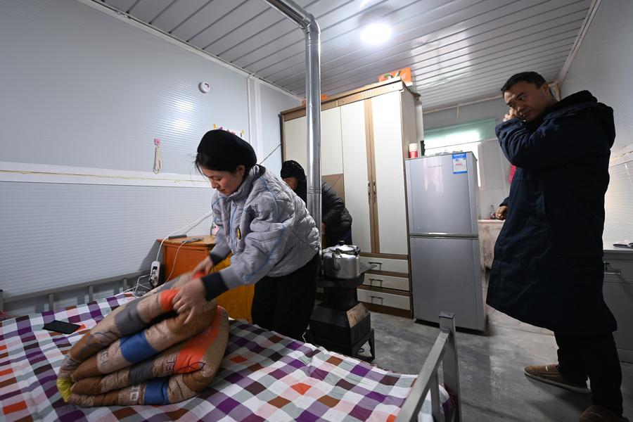 JISHISHAN/HAIDONG, Jan. 1 (Xinhua) -- All forces continued to stick to their posts at the temporary relocation sites for quake-affected people in northwest China's Gansu Province and the neighboring Qinghai Province on the first day of 2024.