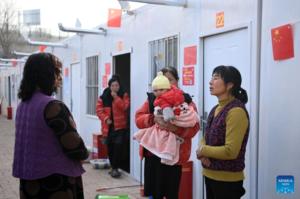 JISHISHAN, Gansu Province, Jan. 1 (Xinhua) -- When the first ray of sunshine of the year 2024 fell upon a county in northwest China's Gansu Province, resettlement sites for people affected by the earthquake in December 2023 were already bustling.