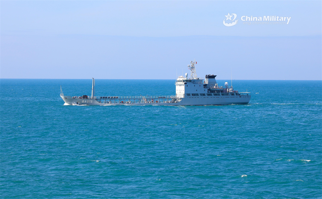 Nanshui 978 water tanker under a naval service ship group of the PLA Navy sails on the sea during a four-day exercise in late December, 2023. (eng.chinamil.com.cn/Photo by Wu Huanqing)