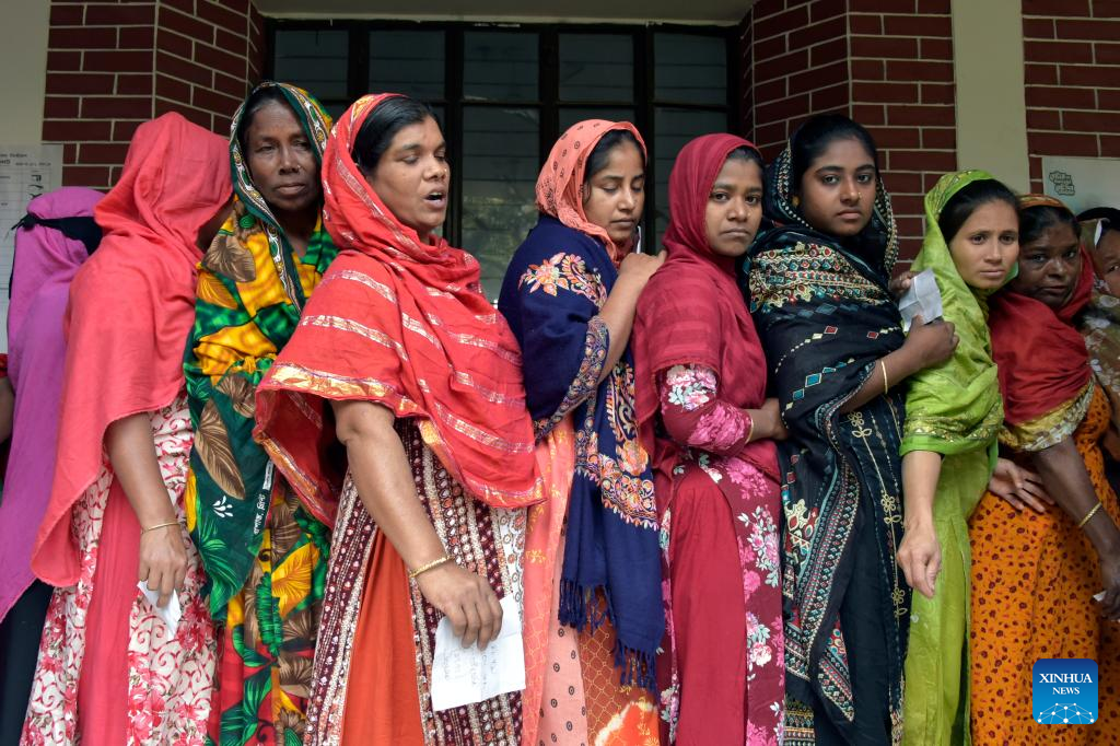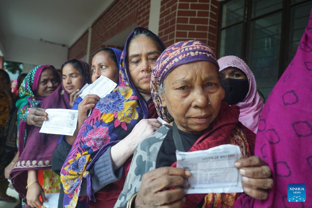 Voters queue up at a polling station in Dhaka, Bangladesh, Jan. 7, 2024. (Xinhua)