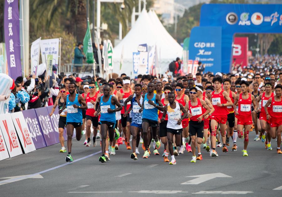 Runners get off the mark in the 2024 Xiamen Marathon on Jan. 7, 2024. (Xinhua/Wei Peiquan)
