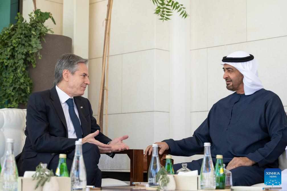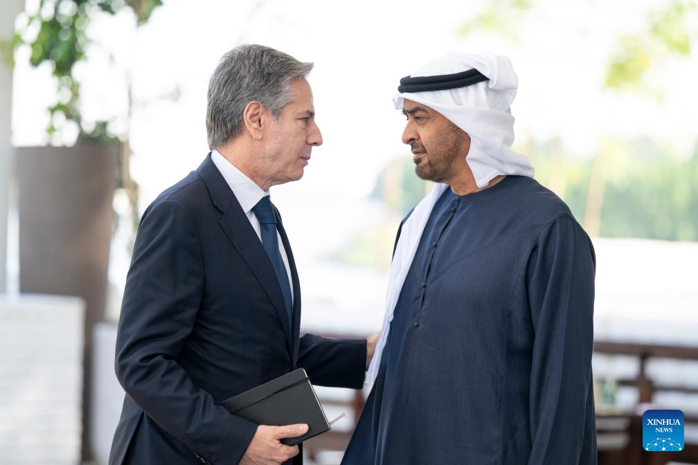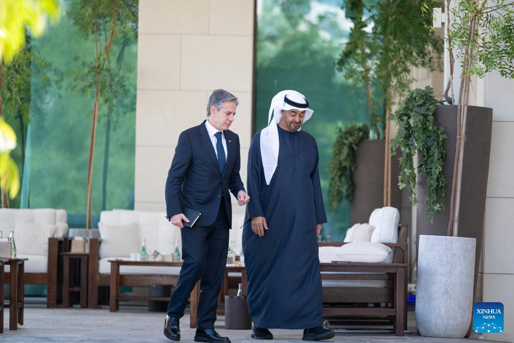 ABU DHABI, Jan. 8 (Xinhua) -- President of the United Arab Emirates (UAE) Sheikh Mohamed bin Zayed Al Nahyan and U.S. Secretary of State Antony Blinken stressed here on Monday the importance of avoiding the expansion of conflict in the region and finding a clear solution to achieve regional stability.