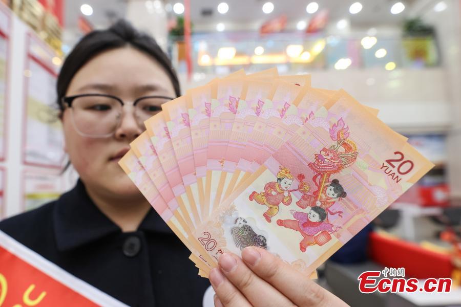 The 2024 New Year commemorative banknotes are displayed at an ICBC bank branch in Guiyang, southwest China's Guizhou Province, Jan. 9, 2024. (Photo: China News Service/Qu Honglun)