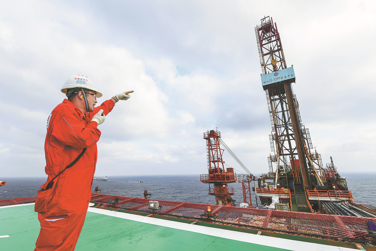 A technician works on an offshore drilling platform in the South China Sea. [Photo/Xinhua]