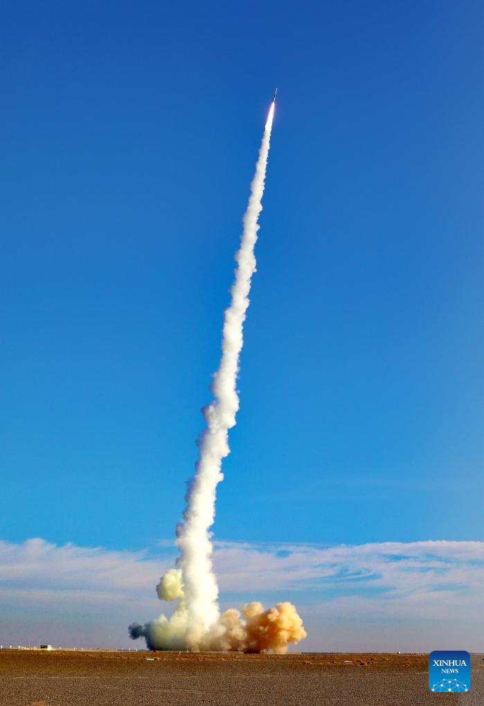 A Kuaizhou-1A carrier rocket carrying the Tianxing-1 02 satellite blasts off from the Jiuquan Satellite Launch Center in northwest China, Jan. 11, 2024. The satellite, mainly used for experiments such as space environment detection, was launched at 11:52 a.m. (Beijing Time) and has entered the planned orbit. (Photo by Yang Xiaobo/Xinhua)