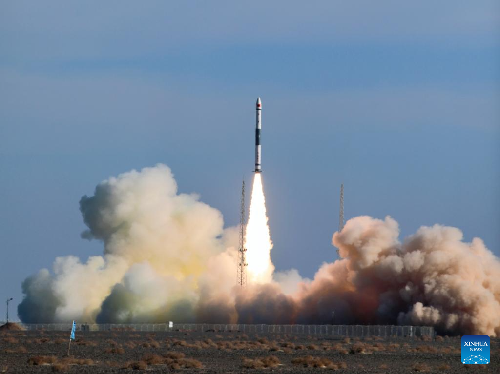 A Kuaizhou-1A carrier rocket carrying the Tianxing-1 02 satellite blasts off from the Jiuquan Satellite Launch Center in northwest China, Jan. 11, 2024. The satellite, mainly used for experiments such as space environment detection, was launched at 11:52 a.m. (Beijing Time) and has entered the planned orbit. (Photo by Wang Haixia/Xinhua)