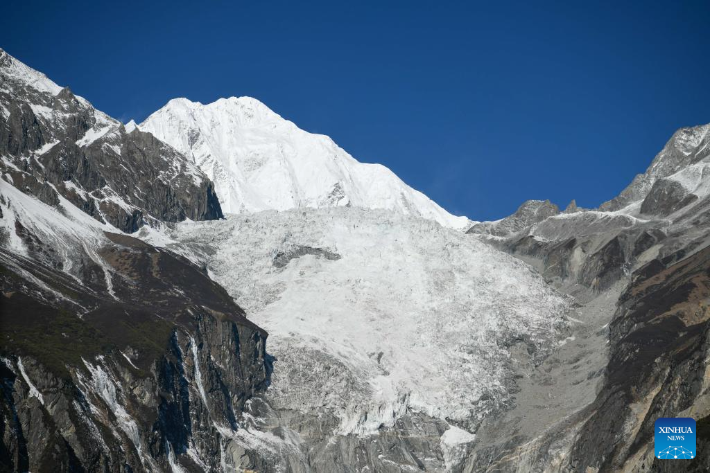 This photo taken on Jan. 10, 2024 shows a view of the glacier at Hailuogou scenic area in Garze Tibetan Autonomous Prefecture, southwest China's Sichuan Province. Hailuogou scenic area reopened to visitors on Dec. 12, 2023 with newly-built and upgraded infrastructure, over a year after a 6.8-magnitude earthquake forced its closure. (Xinhua/Xu Bingjie)