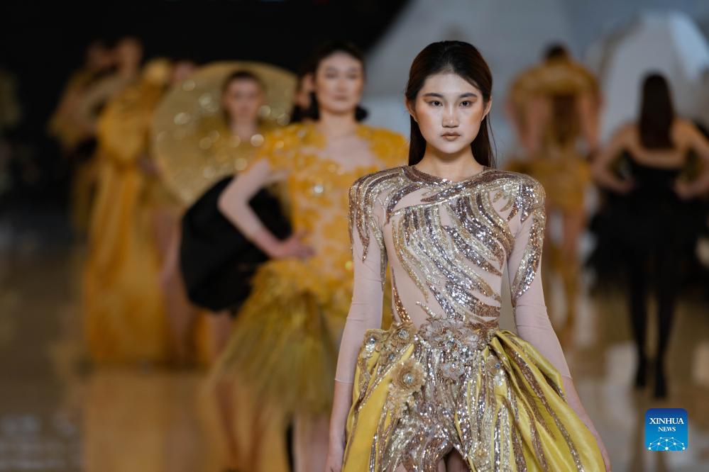 Models present creations at the Harbin Fashion Week in Harbin, northeast China's Heilongjiang Province, Jan. 11, 2024. The 2024 Harbin Fashion Week kicked off here on Thursday. (Xinhua/Xie Jianfei)