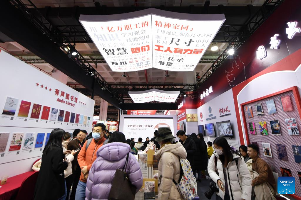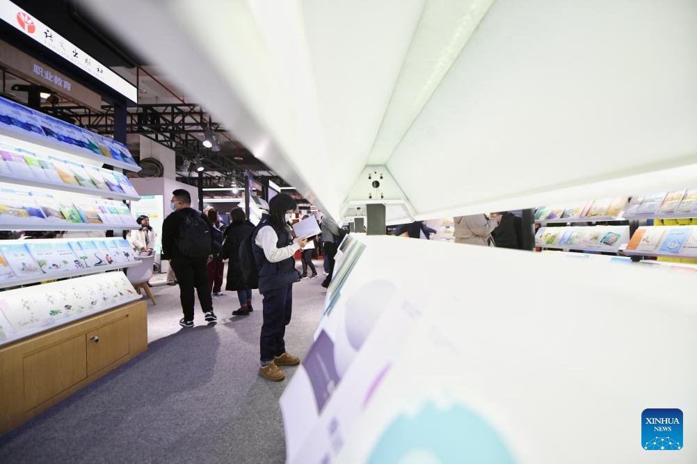 People visit the 2024 Beijing Book Fair in Beijing, capital of China, Jan. 11, 2024. More than 720 exhibitors participated in the 2024 Beijing Book Fair which started on Thursday, showcasing more than 400,000 kinds of books. (Xinhua/Ju Huanzong)
