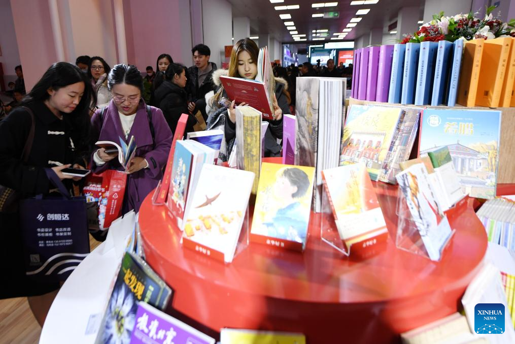 Visitors read books at 2024 Beijing Book Fair in Beijing, capital of China, Jan. 11, 2024. More than 720 exhibitors participated in the 2024 Beijing Book Fair which started on Thursday, showcasing more than 400,000 kinds of books. (Xinhua/Ju Huanzong)