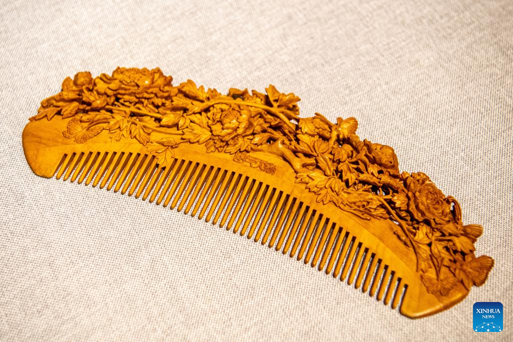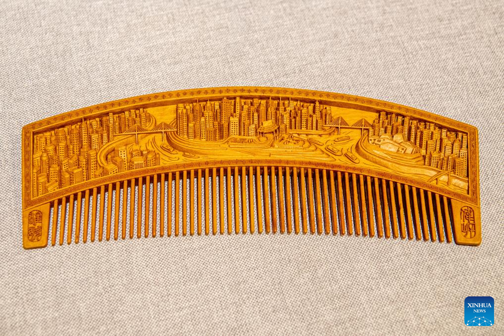 This photo taken on Jan. 5, 2024 shows a wooden comb made by Yu Dahong in Chongqing, southwest China.(Xinhua/Tang Yi)