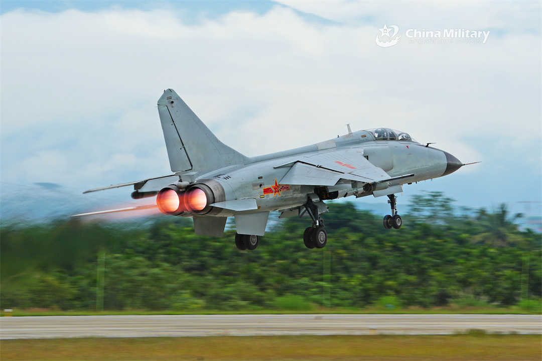A fighter jet attached to a brigade of the air force under the PLA Southern Theater Command takes off for a live-fire training exercise on December 27, 2023. (eng.chinamil.com.cn/Photo by Zhuo Lingpeng)