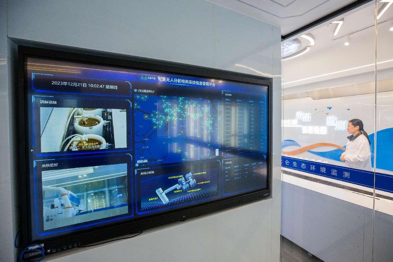 Photo shows a digital information management platform that tracks and analyzes the environmental situation dynamically throughout the process in an AI laboratory in Beilun district, Ningbo, east China's Zhejiang province. (People's Daily Online/Jiang Xiaodong)